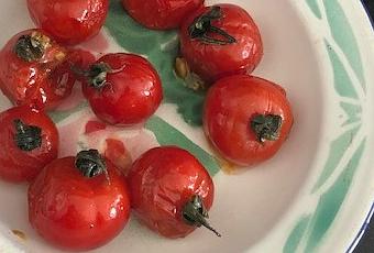 Este verano, he preparado multitud de veces tomates confitados para servirlos como acompañamiento, como ingrediente principal de una pizza margarita, link aquí o aquí, o de un pastel salado cuya receta te contaré uno de estos días. Son fáciles de hacer y son todo un lujazo, te lo aseguro. En esta ocasión utilicé cherrys de rama, ummmmm.