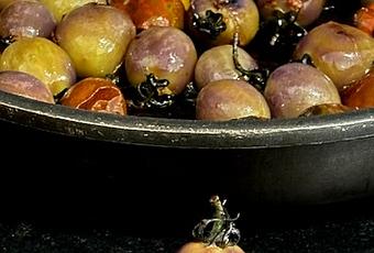 Desconocía totalmente la existencia de los cherry negro, riquísimos. Les he confitado y francamente, sólos como acompañamiento, en ensalada con una rica lechuga de huerto casero y unas aceitunas negras....deliciosos