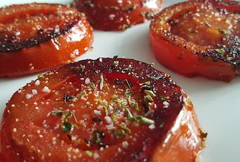 Hoy toca plato facilón... TOMATES A LA PLANCHA, una maravilla para la vista y para el paladar, perfectos para acompañar cualquier plato o simplemente para tomarlos así solos.