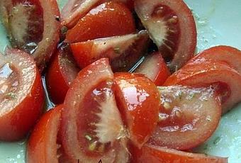 Otra receta muy fácil y rica que me enseñó Ana (La cocinika de Ana); ella los llama "tomates al cachondeo". Últimamente como mucho tomate natural, simplemente con un chorrito de un buen aceite de oliva y una chispa de sal maldon, pero para variar los hice así y repetiré seguro. Gracias, Ana! Quiero también daros las gracias a todos los que me visitáis, porque este fin de semana he superado las 300.000 visitas!!!! Así da gusto seguir cocinando... Un beso!- Lavar y trocear los tomates, poner en un bol, salpimentar, echar cominos y aliñar con una vinagreta de aceite y vinagre. Mezclar bien y servir.