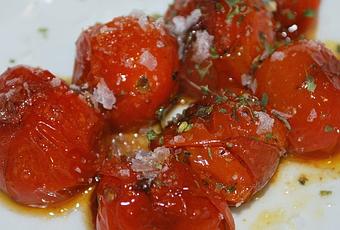 Tomates cherry2 cucharadas de aceite de olivaoréganosal Maldon