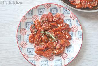 En esta ocasión elegí una receta de su libro Jerusalem, y como veis es una receta sencillísima y que es un acompañamiento maravilloso, tanto para carne como para pescado. Se trata de unos tomates fritos con ajo. Yo elegí hacerlos con tomates cherry pero podéis hacerlo con los tomates que más os gusten.