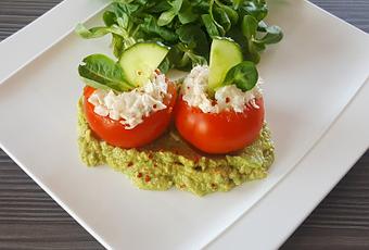 TOMATES RELLENOS SOBRE CAMA DE GUACAMOLE RÁPIDO