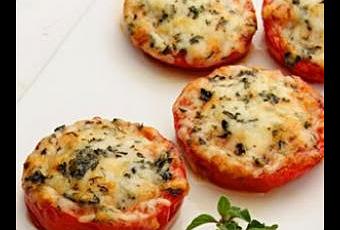 Pre calentar el horno a 200 °C. Colocar los tomates en unafuente apta para horno.