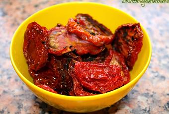 Sacar al sol los tomates durante 6-7 días y meterlos a cubierto por la noche para evitar que se pudran. Debe hacer mucha calor, ya que sino se pueden llegar a pudrir. Se puede poner una gasa sobre la rejilla para evitar que haya bichitos.