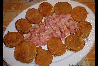 Ingredientes:Tomates verdesHarina1 huevo1 vaso de lechePan ralladoAceitePimientaSalBacon (opcional)Salsa tabasco (opcional)Elaboración:Cortar los tomates en lonchas gruesas, salpimentar al gusto. Batir el huevo junto con el vaso de leche. Rebozar cada loncha primero en harina, después en el batido de huevo y leche y finalmente en pan rallado. Freírlas en una sartén en aceite muy caliente, hasta que estén doradas por ambos lados. Depositar sobre papel de cocina para que éste absorba el aceite sobrante. Si se desea, acompañar los tomates con unas lonchas de bacon y salsa tabasco.