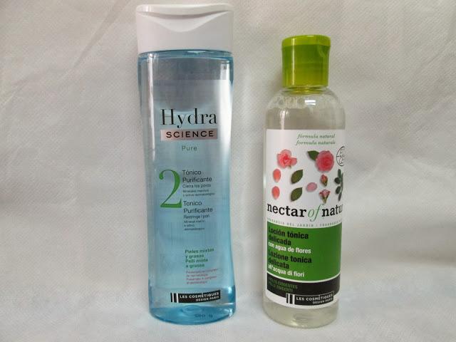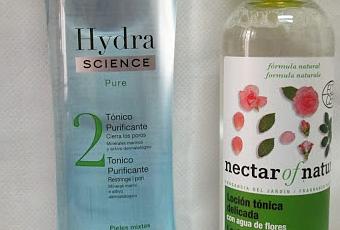 El primer tónico es de la marca "Hydra Science Pure", especialmente indicado para pieles mixtas/grasas. Promete purificar la piel y cerrar los poros, además, contiene minerales puros.
