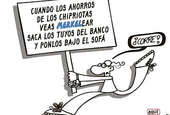España no es Chipre ha sido la obviedad del fin de semana. Los medios han repicado y repiqueteado las palabras encumbrando lo obvio a categoría de noticia relevante. Prima el who de la cuestión, el criterio de notoriedad, sobre el contenido, que resulta poco o nada interesante. Aparte de su escaso valor informativo, tampoco actúa de bálsamo tranquilizador. No para mí. Ni a los mercados, que se mueven por extrañas para nosotros asociaciones de ideas y previsiones sobre futuros. Hoy castigan con fuerza la deuda y la Bolsa españolas porque opinan que sí, que España podría ser Chipre, de la misma forma que cada día se parece más a Grecia. Ellos, como Forges hoy en El País, no se creen a la secretaria general del partido del Gobierno. Por eso, el mejor consejo es precisamente ese “¡Corre!”. Pero puede que seamos también