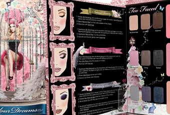 In Your DreamsToo Faced lleva a todas las adictas a la belleza al país de los sueños. Esta paleta, digna de los más bellos estuches de princesa, propone 3 looks completos para un maquillaje glamuroso y cautivador. Incluye explicaciones paso a paso que permiten lograr un look natural, un maquillaje femenino y sensual o un smoky seductor.