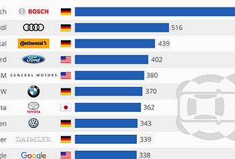 Los datos se basan en un reporte proporcionado por el Cologne Institute for Business Research cuya elaboración fue la culminación del análisis de 5,839 patentes relacionadas con la conducción autónoma para saber cuáles son las compañías más activas en este rubro.