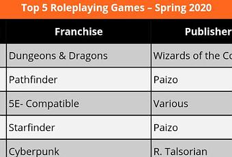 Se me olvidaba esto, que colgó ayer nuestro compañero El Guardián de los Arcanos. Se trata del "Top Five" de juegos de rol más vendidos en la temporada de primavera de 2020, en el mercado anglosajón (EEUU, Reino Unido, Canadá, Australia, etc), según la prestigiosa web IcV2.