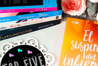 Con un poquito de retraso en esta ocasión os traemos una nueva entrada de nuestra sección TOP FIVE que corresponde al mes de OctuBRE para que podáis ver que cinco novelas nos han llamado más la atención entre todas las publicadas ese mes. Como siempre las RESEÑAS os las dejamos al lado del título por si os apetece pasaros a dejar vuestra opinión sobre ellas, lo cual os agradecemos enormemente y como ya sabéis os devolveremos todos los comentarios como es nuestra costumbre.