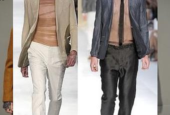 Gasas, muselinas, organizas, tules, los tejidos más vaporosos se tornan protagonistas, parece que se lleva enseñar, también insinuar. Los materiales más delicados son ahora destacados, de forma velada en nude y combinado con blanco por AlexanderMacqueen o conmicro corbata casi invisible de Costume Nacional