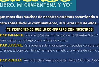 Con motivo de la celebración del día internacional del libro el próximo 23 de abril de 2020, desde la concejalía de cultura del Ayuntamiento de Toral de los Vados, se pone en marcha este concurso que pretende dar a conocer como la lectura y los libros están ayudando a pequeños y mayores a sobrellevar el confinamiento impuesto por el estado de alarma debido al COVID-19, además de proponer a los vecinos del municipio de Toral de los Vados una actividad más que realizar durante el confinamiento.