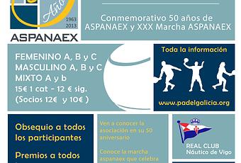 Del 29 de julio al 4 de agosto, en las instalaciones del Real Club Náutico de Vigo, se va a celebrar el Torneo de Pádel Solidario Aspanaex en favor de esta gran asociación gallega que cumple este año su 50 aniversario y celebra la trigésima edición de su Marcha solidaria.