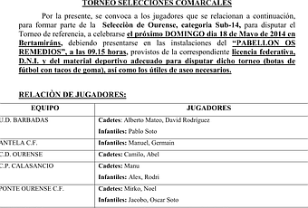 Convocatoria para el Torneo de Selecciones Comarcales con los horarios que publicamos en este enlace