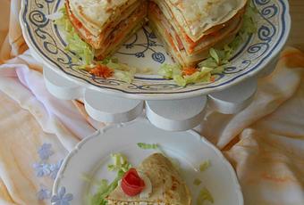 Hoy traigo una receta muy veraniega y muy argentina, jajajaj... Esta torre de panqueques (crepes), que también es conocida como Torta alemana o Torta fiambre, acostumbramos hacerla para Navidades, como en Argentina es verano solemos comer muchas comidas frías y generalmente preparadas con antelación. Me encanta hacerla porque nos gusta a todos, es muy fácil y admite cualquier relleno, así que imaginación al poderrrrr...