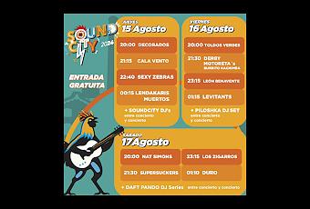 El Torrelavega Sound City nos presenta sus horarios de lo que será su edición 2024 que se celebrará en unos días. Este año entre el 15/8 y el 17/8 el Torrelavega Sound City nos presenta tres jornadas de conciertos y dj sets para completar la experiencia.Este evento que se celebrará en la localidad de Torrelavega entre el 15/8 y el 17/8 contará con directos de Lendakaris Muertos, Cala Vento, León Benavente, Los Zigarros, Derby Motoreta's Burrito Cachimba, Nat Simons y mucha más bandas en un evento con entrada gratuita. Serán conciertos de tarde noche y estos son los horarios.