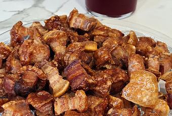 Tenia ganas de preparar esta receta para explicaros como la preparaba, se trata de los torreznos, algo tan rico para muchos, a mi personalmente me encantan!! umm tan crujientes.A otros les horrorizan tan solo el nombre, por todas las calorías que conllevan, quizás son una bomba de calorías, pues quizás si, por eso en vez de freírlos en aceite los he cocinado en la freidora de aire para restarle colorías, de echo es impresionante la cantidad de grasa que queda en el cestillo de la freidora una vez hechos, de echo yo misma cuando iba a desechar el aceite, o grasa sobrante, dije madre mía esto me lo comería si no los hubiera hecho en la airfryer.Pero bueno no es cuestión de lamentaciones, es un capricho que se come muy de vez en cuando, no ? Al menos hablo por mi y un capricho de vez en cuando hay que darse, no os parece? La cuestión es que en casa disfrutamos de esta rica tapa, acompañado de un tinto de verano y no veas lo que disfrutamos.Que te apuntas a un picoteo o a un vermut conmigo?Venga, vamos con la receta.Ingredientes:7 Torreznos grandesSal en escamas de carbónPreparación:Yo compre estos torreznos prefritos, es decir ya estaban preparados para terminar de freír en aceite o airfryer, cuando los compre en el mercado de Huesca, me dijo el tendero que eran los originales torreznos de Soria y los preparaban ellos mismos, tan solo tenia que quitar el envase del vacío y hacerlos.