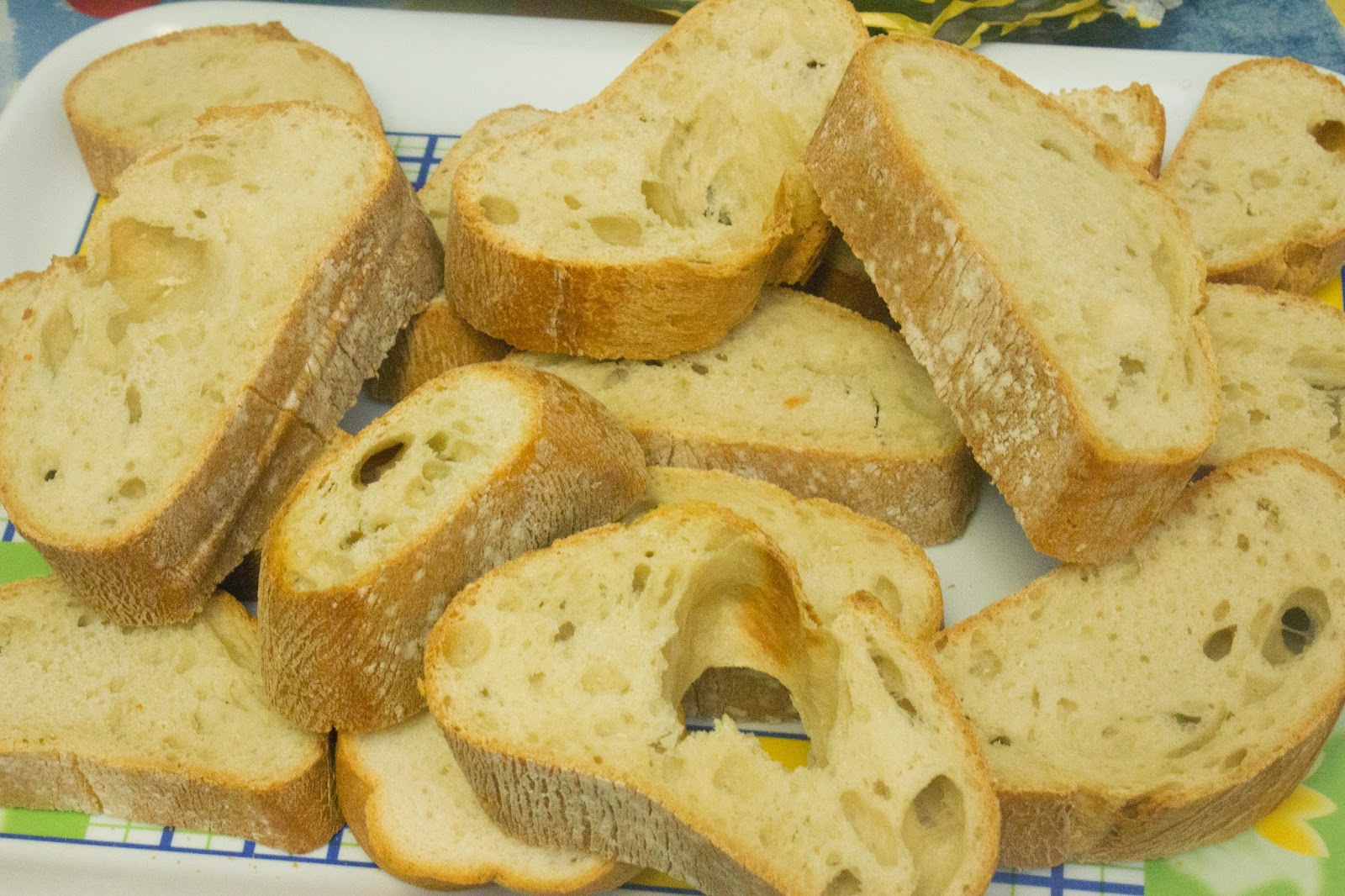 Corta mientras el pan en rodajas gorditas para que luego no se rompan.