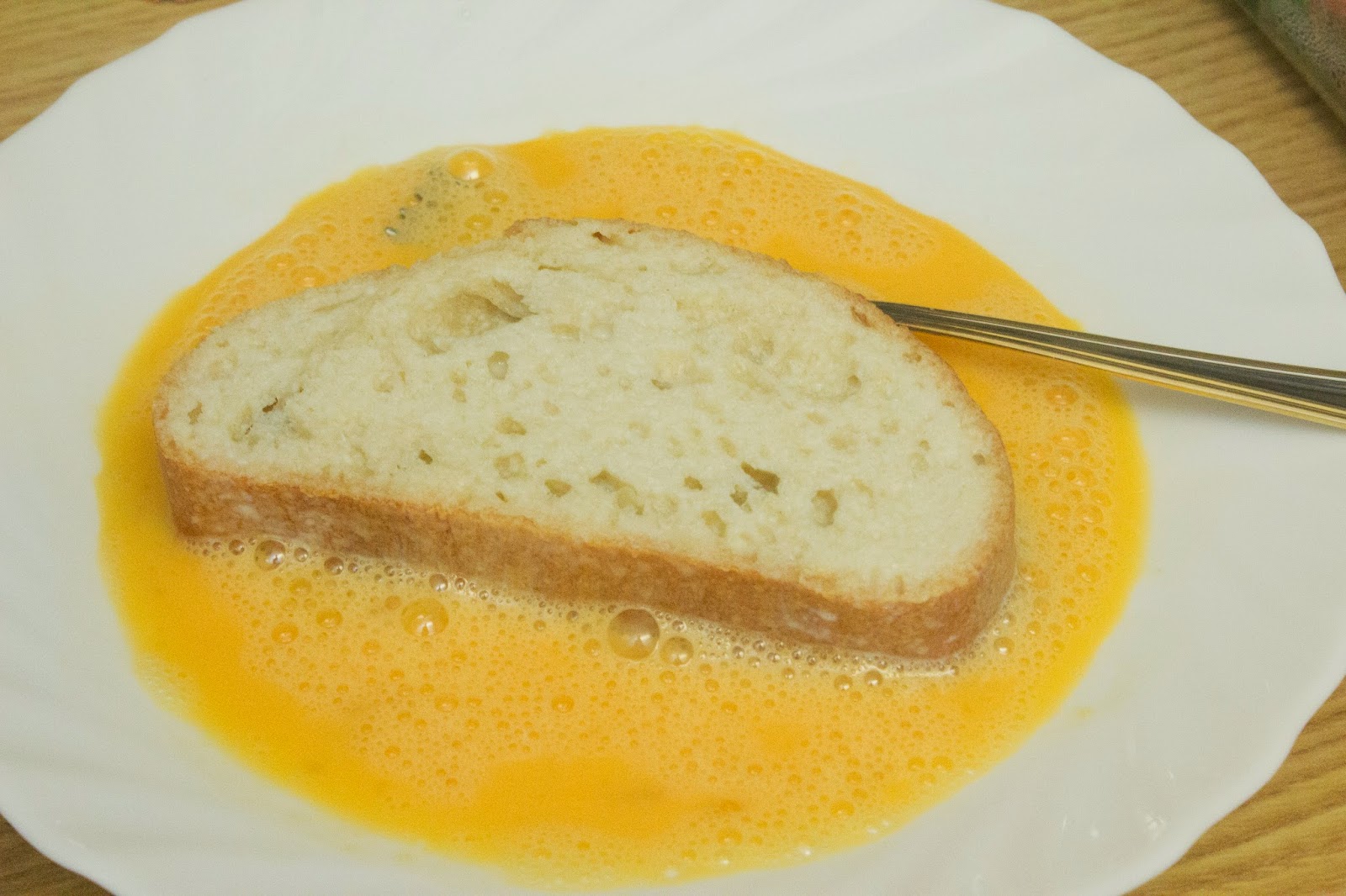 Moja bien el pan en el huevo por los dos lados. Como ves aquí tienes los diversos tipos de pan.
