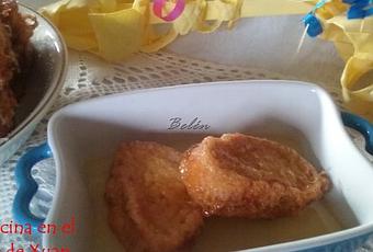 Ingredientes:16 rebanadas de pan300 ml de leche50 gr de azúcar1 trozo de cascara de limón1 ramita de canela4 o 5 huevos