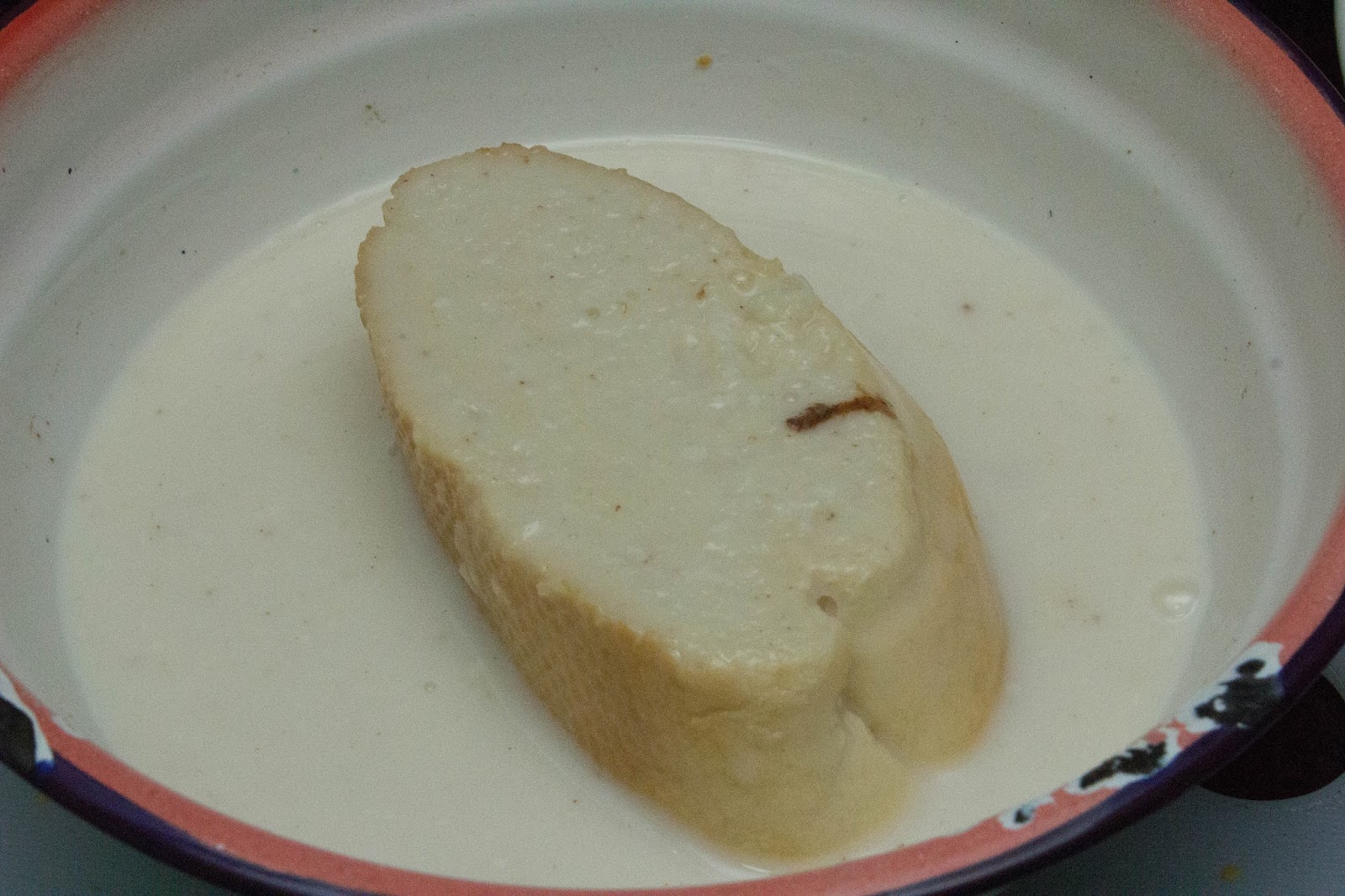 Cortar el pan en rebanadas de más o menos 3 dedos de anchas, para que no se deshagan.