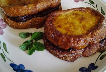 tapamos con otra rebanada y las pasamos por una mezcla de azúcar y canela.