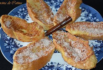 1 litro de leche de cocola corteza de 1/2 limónla corteza de 1/2 naranja1 rama de canela4 cucharadas de azúcar1 barra de pan del día anterior2 huevosazúcar y canela para espolvorearPreparación: