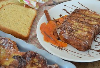 Ingredientes: Un pan brioche 500 ml de leche150 ml de nata líquida1 palo de canelaPiel de media naranja80 gr de azúcar moreno3 huevos aceite para freirnocilla para untarazúcar para rebozar