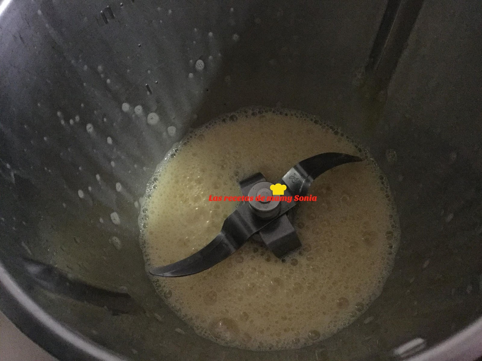 Ponemos los huevos en el vaso y batimos 12 Seg, Vel 5. Pasamos a un cuenco y reservamos.