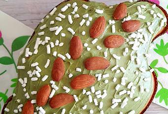 - Almendras tostadas, granella de azúcar y crema de pistacho para decorar.
