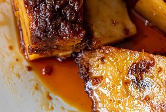 - Transferir el caramelo a un molde engrasado girándolo hasta que cubra todo el fondo del mismo. Reservar.
