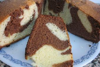 En un bol agregar la manteca, el azucar y la esencia, batir hasta conseguir que la preparacion quede bien homogenea. Incorporar los huevos de a uno y seguir batiendo. Agregar la harina leudante de forma alterna con la leche y revolver con cuchara de madera de forma envolvente para que la preparacion no baje, dividir la preparacion en dos y a una adicionarle el cacao. Colocar la preparacion de vainilla en un recipiente enmantecado y enharinado, verter encima el que contiene cacao y con la cuchara realizar movimientos para que puede mezclarse. Meter al horno previamente calentado a 180º por 40 a 45 minutos aprox., introducir un cuchillo en el bizcochuelo si sale con masa es porque aun le falta coccion, cuando el cuchillo salga limpio lo retiramos del horno. Dejamos enfriar y servimos.