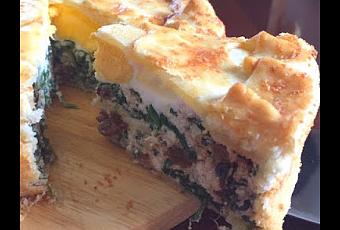 Jajaja ..digo que a la catalana porque a las espinacas le he añadido pasas y piñones.Es una torta típica de Liguria , Italia. Se toma en Semana Santa, pero es tan rica que también puedes hacerla en otras épocas. Normalmente se hace con acelgas . Los inmigrantes italianos la llevaron a muchos países como Uruguay, Perú , Argentina...