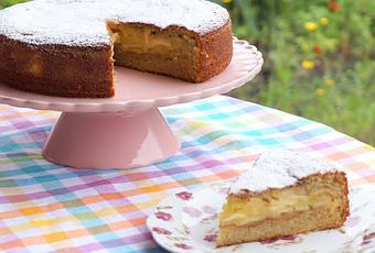 Este es un bizcocho que se cocina 2 veces, por lo que las manzanas quedarán como un relleno.