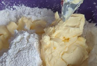3) Una vez que estén bien integrados (licuados) le agregamos el azúcar poco a poco.