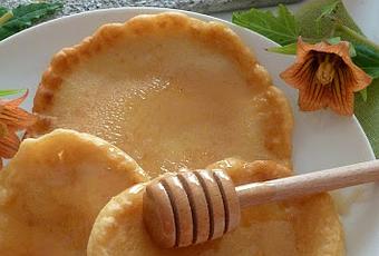 1 huevo L, ralladura de naranja, 100 ml de leche, 100 gr de puré de calabaza, 40 gr de azúcar, 125 gr de harina, 10 ml de licor de anís o anís en polvo, una pizca de sal, canela molida.Aceite para freír y miel para poner por encima.