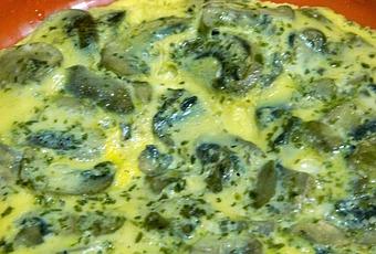 un pelin de aceite, ajitos picados, perejil picado y los champiñones. 4 min potencia máxima (800w)