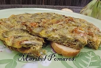 Pelamos la alcachofas y las ponemos con agua, zumo de limón para que no se pongan negras, mientras las vamos cortando.