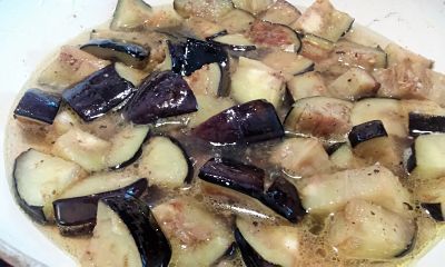 Pon un poco de más aceite en la sartén y cuando esté caliente echa las berenjenas. Dora por todos lados. Sazona con el curry, sal y pimienta.