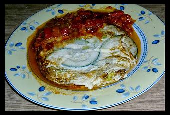 La ponemos en un plato y en la misma sartén calentamos medio bote de pisto para acompañar con la tortilla.