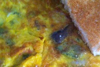 - Bate los huevos e incorpora los champiñones, los ajetes y el queso azul desmenudazo. Mezcla bien con el huevo.