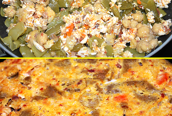 Batimos los huevos y echamos las sobras. Hacemos y cuajamos de la misma manera que si se tratara de una tortilla de patatas.