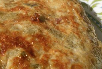 En una sartén cubrir el fondo con el aceite de oliva, una vez caliente, echar la mezcla de los ingredientes y a fuego lento, sin prisas dejar cuajar primero por una parte, dándole la vuelta a continuación dejándola hacer por el otro lado.