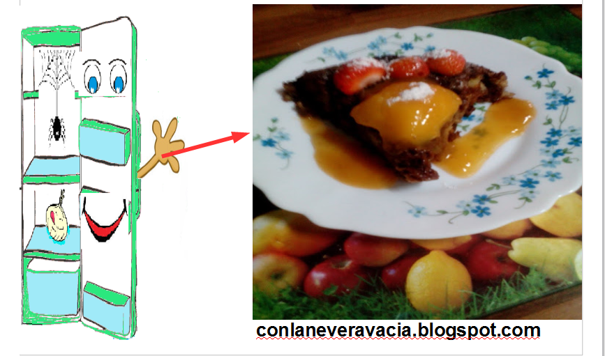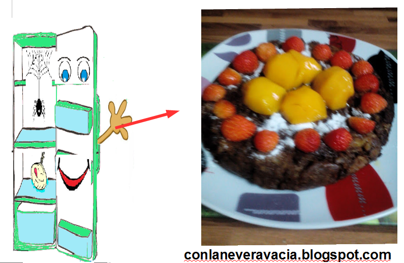 Destapa el bol añade el chocolate y mezcla, si ves que ha quedado un poco espeso añadele un poco de leche.Incorpora la mezcla en la sarten y haz la tortilla vigilando que no se te pegue. Cuando veas que ya esta, la puedes sacar y dejar enfriar.Antes de servir espolvorea con azúcar lustre, adorna con las fresas y el melocotón en almíbar.A la hora de comer he puesto una cucharada de mermelada de albaricoque casera.El melocotón es casero, es de nuestro melocotonero del verano pasadoLas fresas las recolecte ayer por la tarde de nuestro huerto.Espero que os guste y que aproveche.conlaneveravacia.blogspot.com[email protected]Con esta receta participo en el 3º Aniversario de los retos de CdM - Cocineros del Mundo CHOCOLATES VALOR