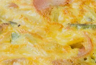 Ingredientes:3 patatas1 manojo de espárragosqueso edam ligeroquesitoslonchas de lomo6 huevos