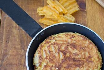 Estoy segura de que mi hija Carmen la preparará algún día para cenar. Le encantan las patatas chips, y le encanta la tortilla. Y la receta es para principiantes, para niños, lo vais a ver.