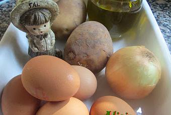 - Patatas 600 g.- Huevos 5.- Cebollas ½.- Aceite de oliva 1 vaso, 250 ml.- Sal.