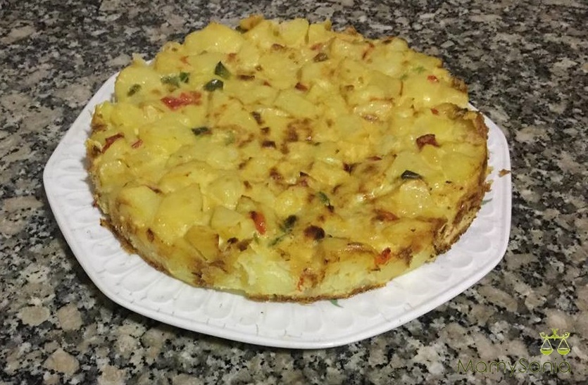 _ 1 kg de patatas_ 6 huevos medianos_ 100 grs de pimiento verde y rojo_ 1 cebolla mediana_ Sal_ Aceite